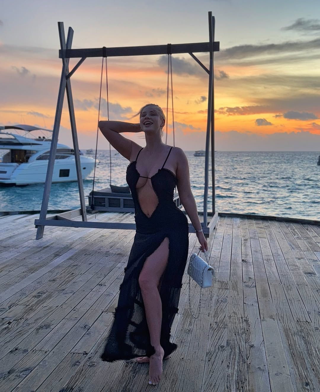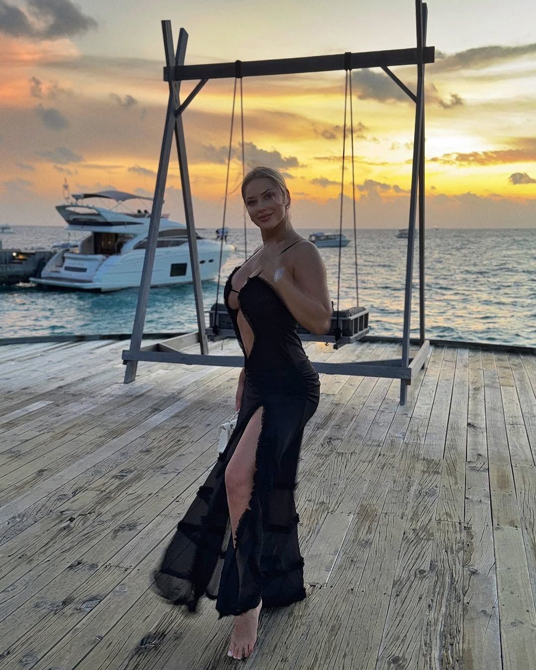 Незвичайні природні параметри додають пікантності чарівному вигляду дівчини. Неймовірні краєвиди та усмішка дівчини додають загадковості вишуканим світлинам екскоханої гравця Шахтаря.