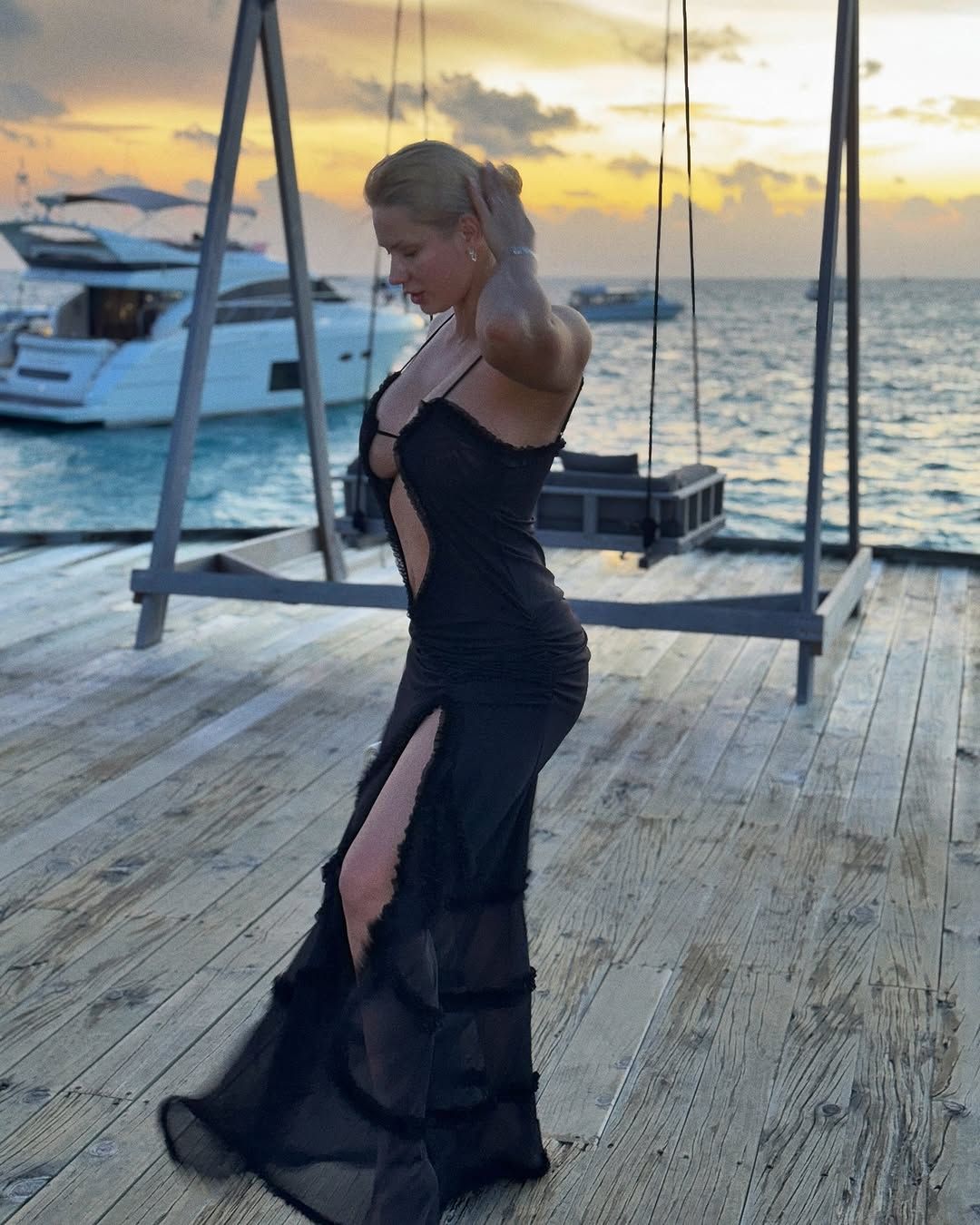 Цього разу Анна Зубкова опублікувала світлини у стильній чорній сукні. Естетика та вишуканість якнайкраще описують образ колишньої дружини Олександра Зубкова.