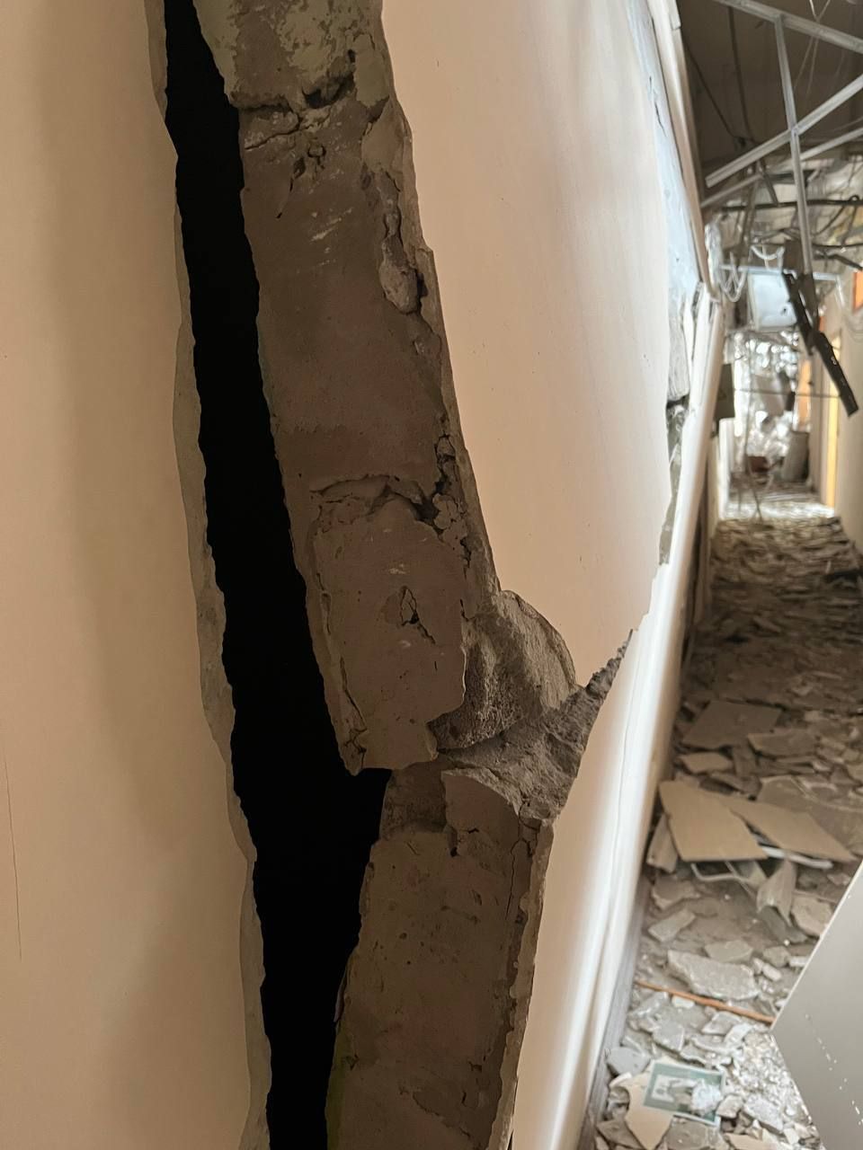Внаслідок влучання вщент рознесло кабінети ФФК та шоурум Select. Будівля зазнала жахливих руйнувань. Асоціація футзалу України виклала фото моторошних наслідків удару російських військових.