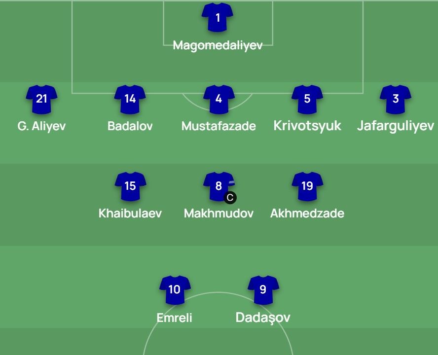 АЗЕРБАЙДЖАН: Магомедалієв – Г. Алієв, Бадалов, Мустафазаде, Кривоцюк, Джафаргулієв – Хайбулаєв, Ахмедзаде, Махмудов – Дадашов, Емрелі.