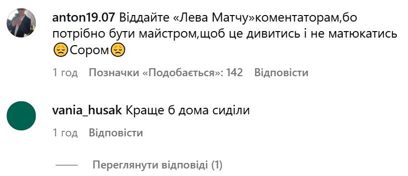 - Віддайте "Лева Матчу" коментаторам, бо потрібно бути майстром, щоб це дивитись і не матюкатись.