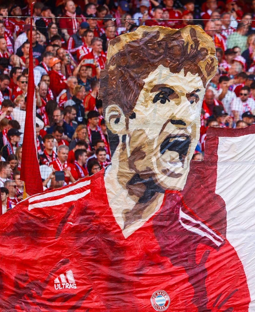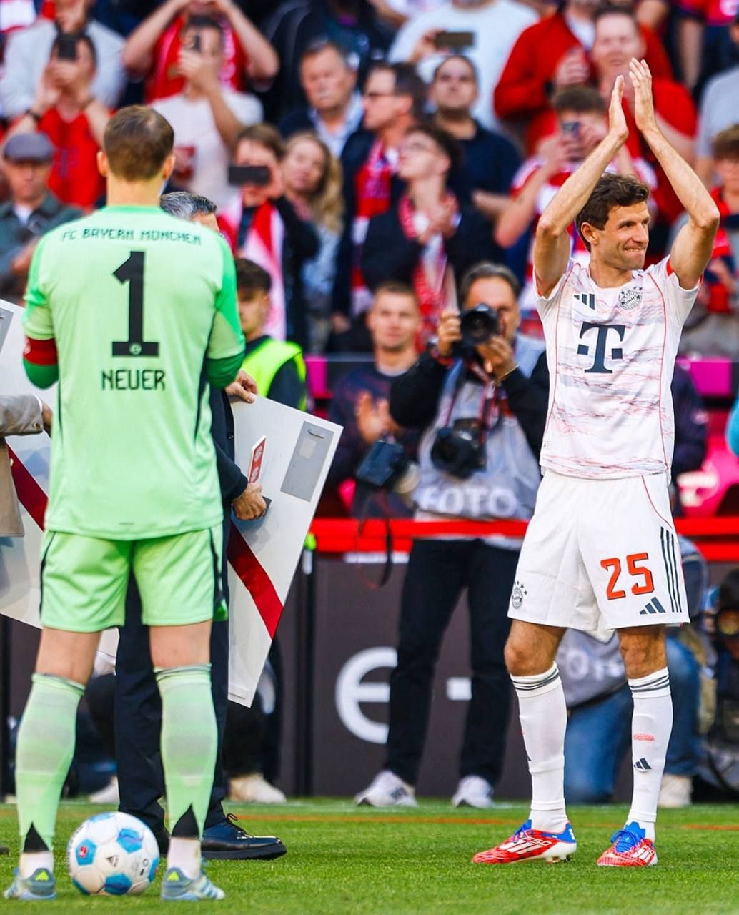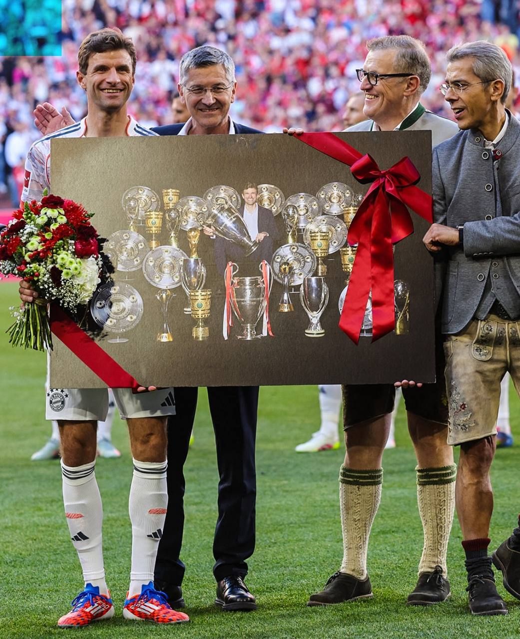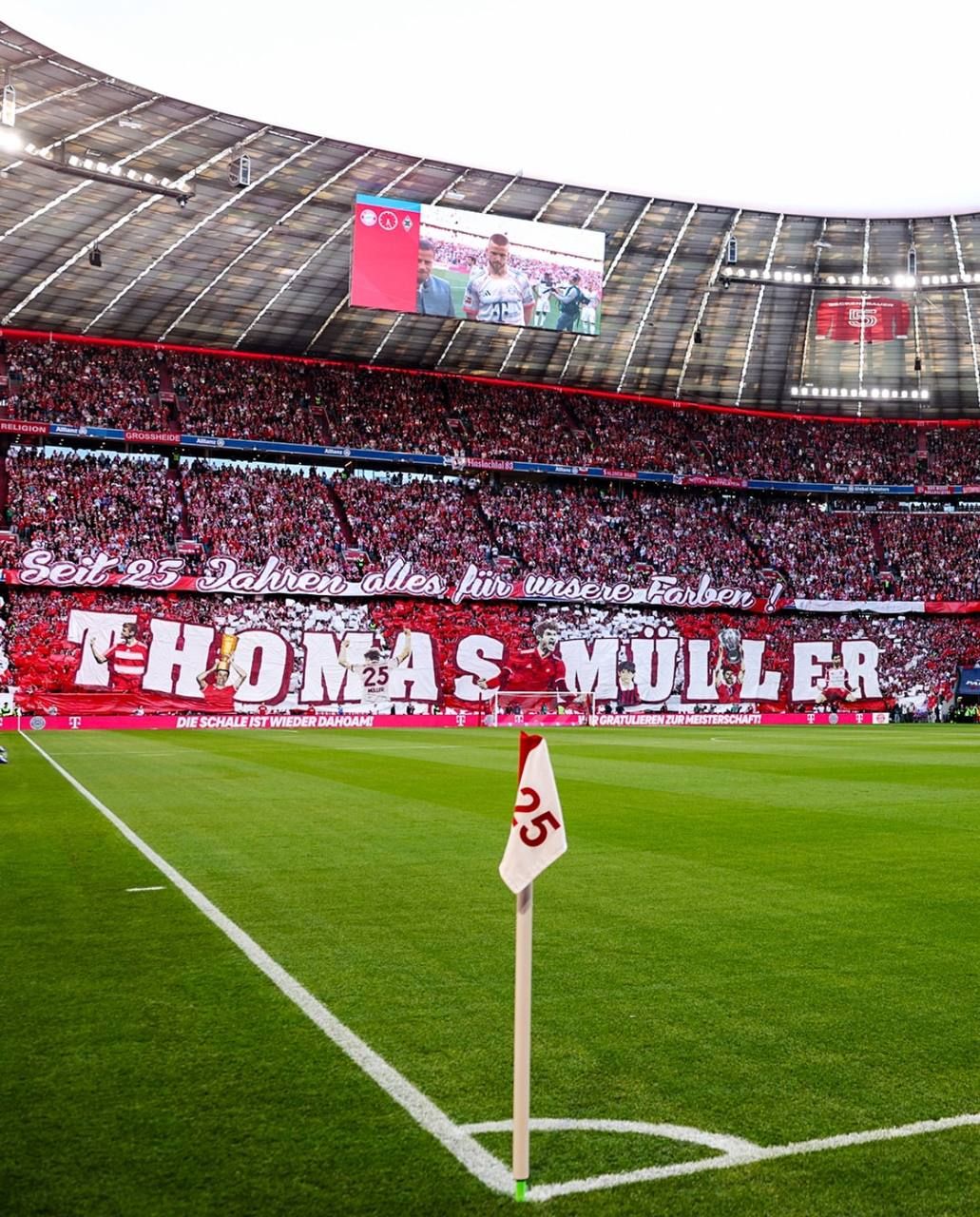 Німецькому футболісту подарували картину на полотні, де зображено Мюллера та всі його трофеї. Уболівальники розтягнули на трибунах великий банер з написом "25 років робив усе для наших кольорів – Томас Мюллер!".