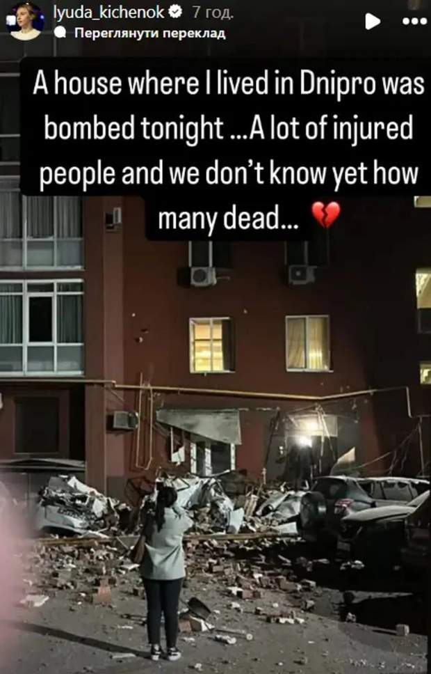 Будинок, в якому я жила у Дніпрі, був обстріляний цієї ночі… Багато поранених, і ми ще не знаємо, скільки загиблих,