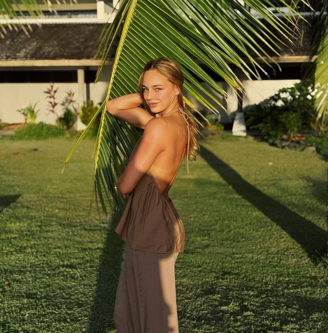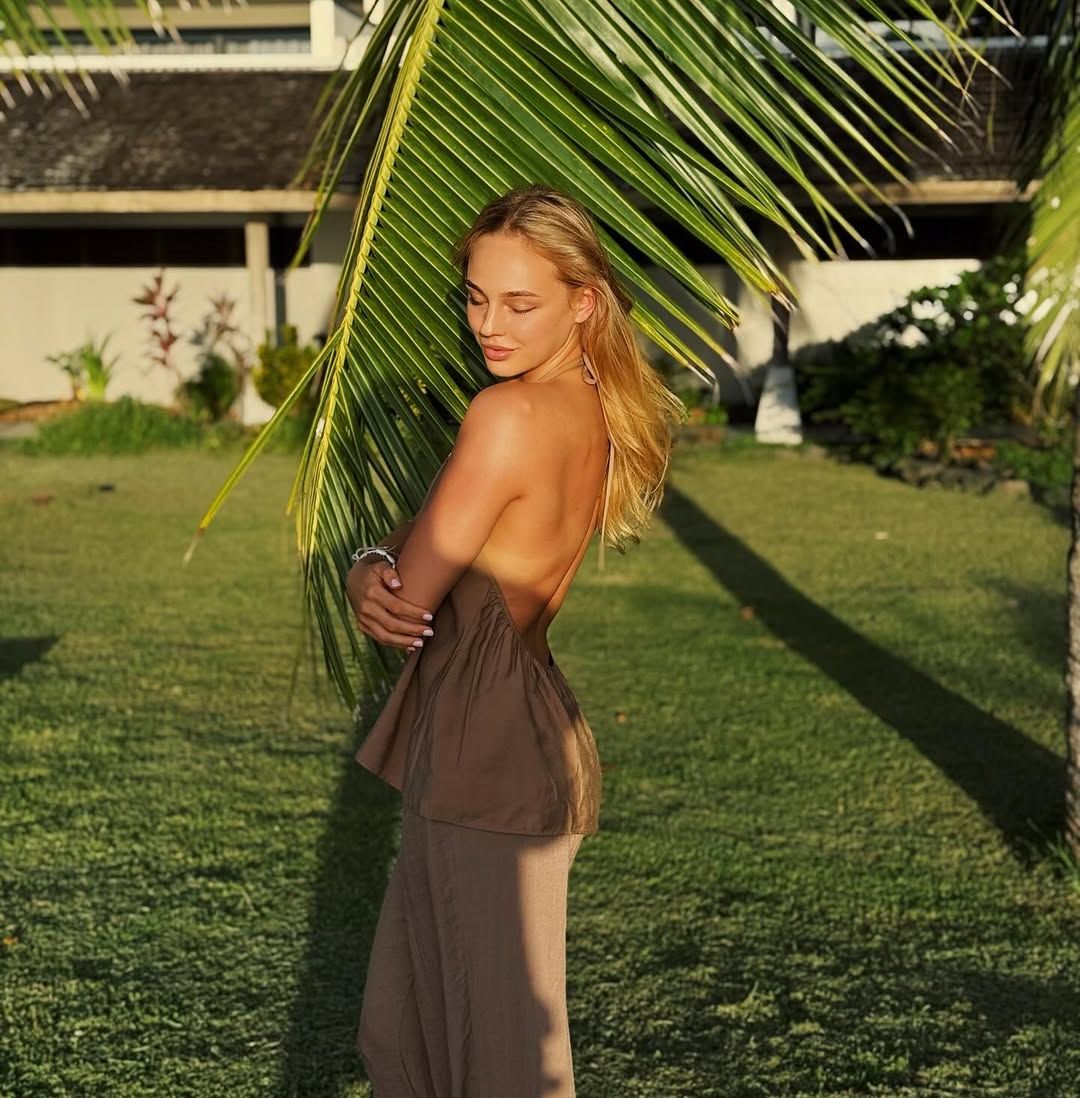 Дар'я Білодід постала перед камерою у розкішному вигляді. Для свого чарівного образу дзюдоїстка обрала світло-коричневу сукню з відкритими плечима та спиною, яка підкреслила її фігуру.