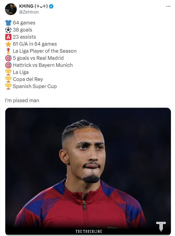 Невдоволення фаната щодо місця Рафіньї у голосуванні за "Золотий м'яч" / Скриншот із соцмережі Х