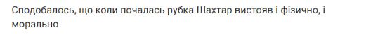 - Сподобалось, що коли почалась рубка Шахтар вистояв і фізично, і морально.