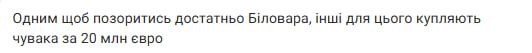 - Одним щоб позоритись достатньо Біловара, інші для цього купляють чувака за 20 млн євро.