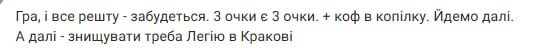 - Гра, і все решта – забудеться. 3 очки є 3 очки. + коф в копілку. Йдемо далі. А далі - знищувати треба Легію в Кракові.