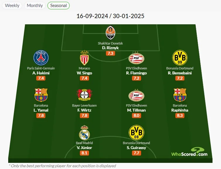 Символічна збірну основного етапу ЛЧ-2024/2025 / Скриншот із WhoScored