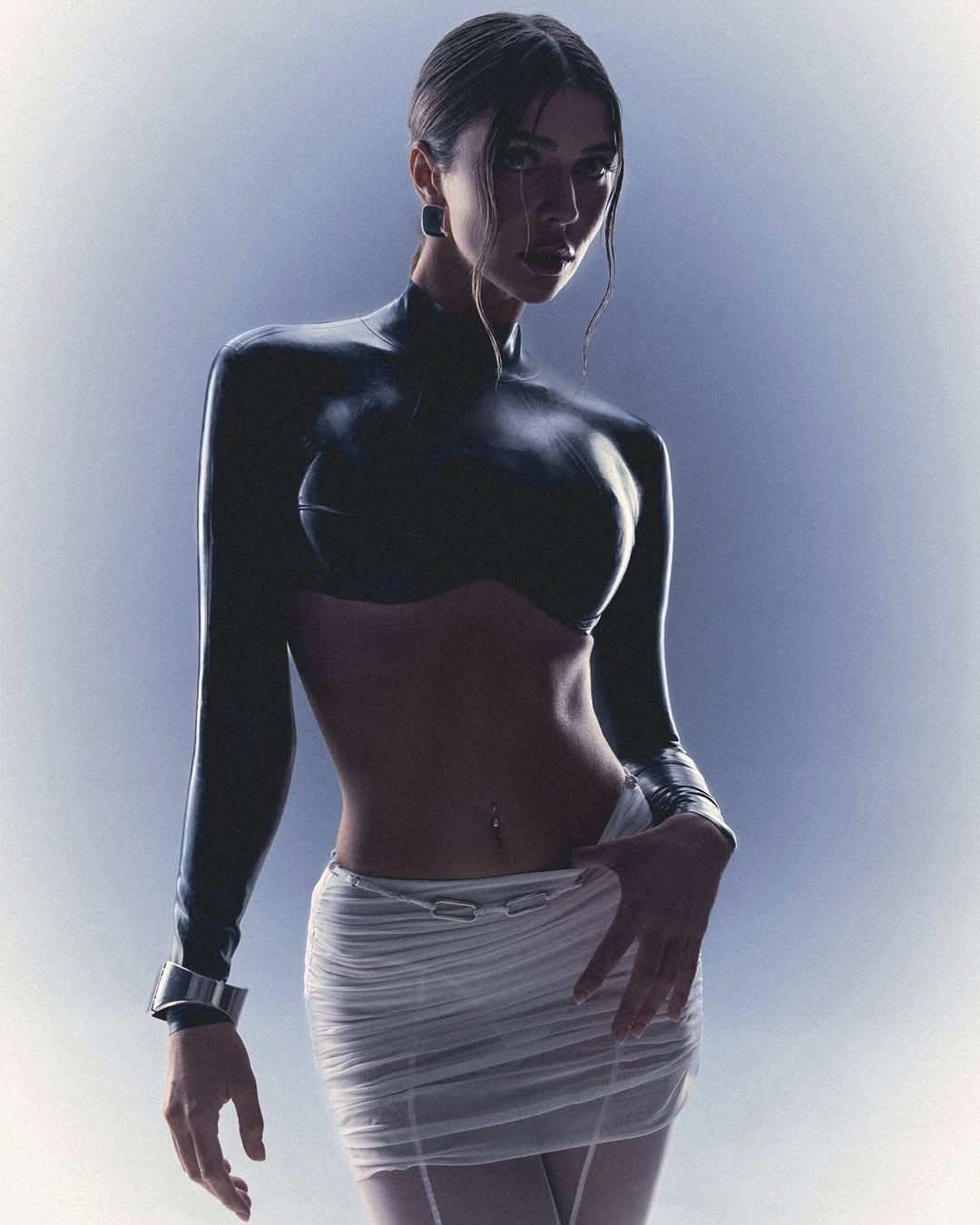 Христина Яремчук взяла участь у гарячій фотосесії, чим поділилась зі своїми фанами. Кохана Романа Яремчука постала перед камерою у чорному обтислому топі.