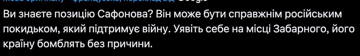 Як у Франції реагують на пост дружини Забарного?
