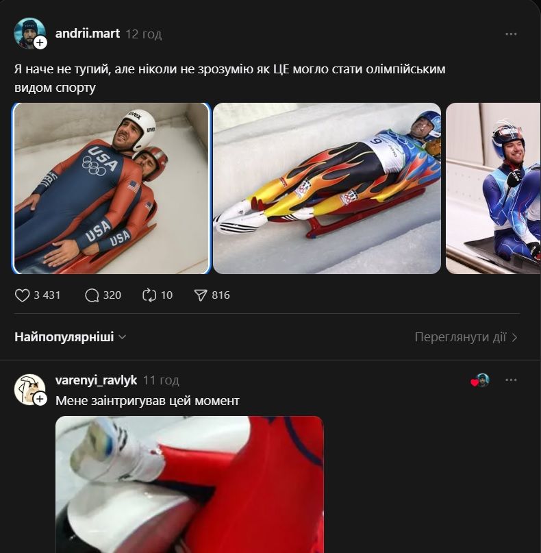 У мережі Threads жартують над "двійками"-чоловіками у санному спорті