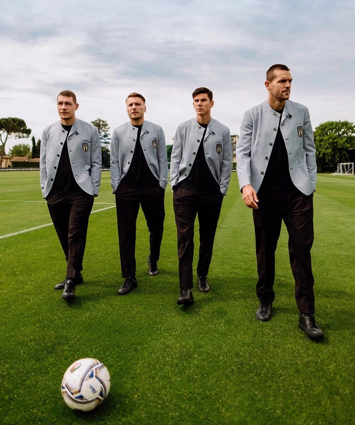 Також бренд EA7 тісно співпрацює із футболом. Джорджіо Армані одягав рідну збірну Італії до Євро-2020. Щоправда, мова не йде про ігрову форму, а костюми для урочистостей. Елегантні костюми виконані були у світло-сірому кольорі, присутні коміри та багато ґудзиків. Також піджак доповнювали чорна футболка та такого ж кольору вільного крою штани.