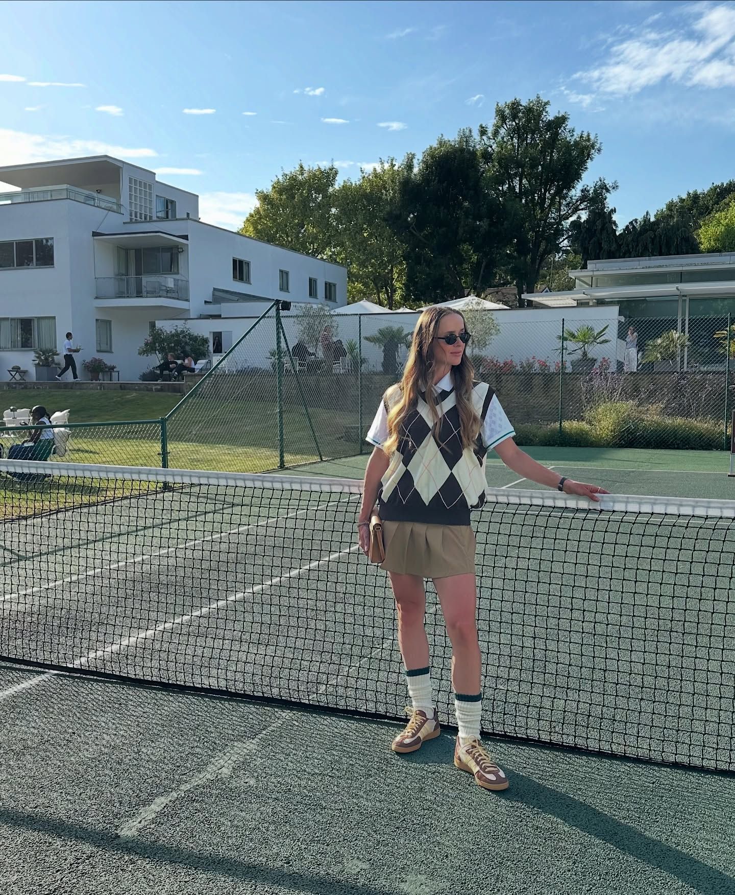 На фото Еліна Світоліна постала перед камерою у стильному бежево-зеленому вбранні. Розкішний образ української тенісистки чудово підходить класичному Вімблдону.