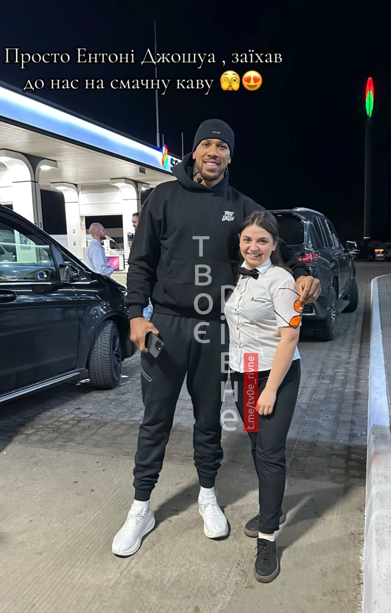 Ентоні Джошуа на одній з АЗС біля Рівного/Фото із соцмереж