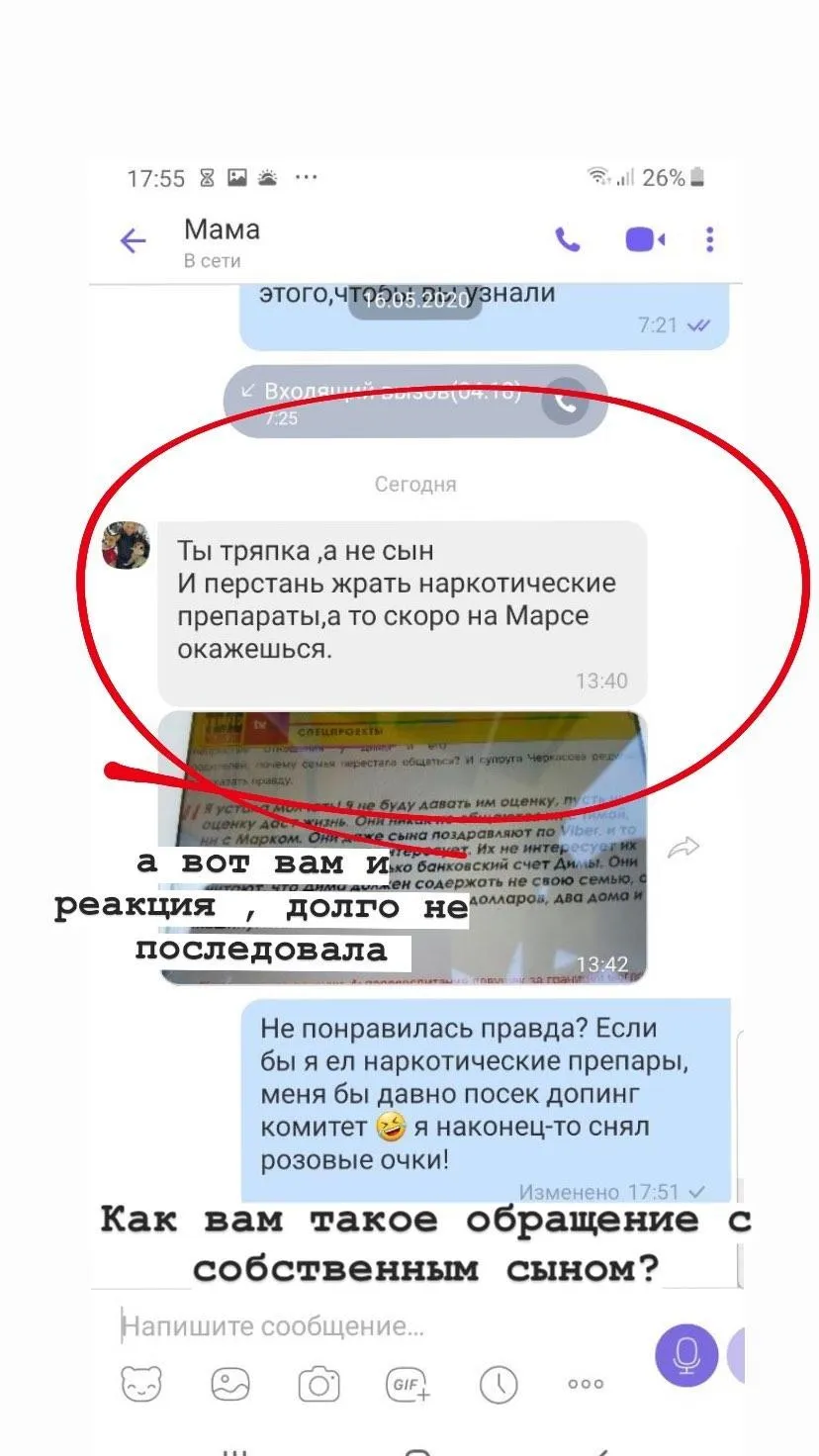 Листування Дмитра з мамою / Скриншот з інстаграму дружини плавця