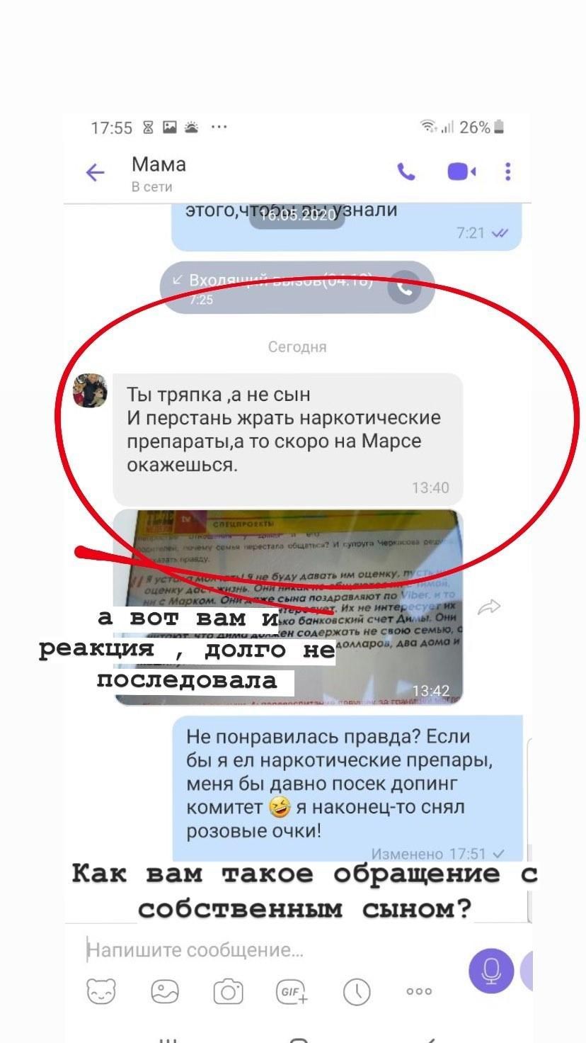 Листування Дмитра з мамою / Скриншот з інстаграму дружини плавця