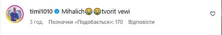 - "Михалич творить речі", – написав у своєму оригінальному стилі Артем.