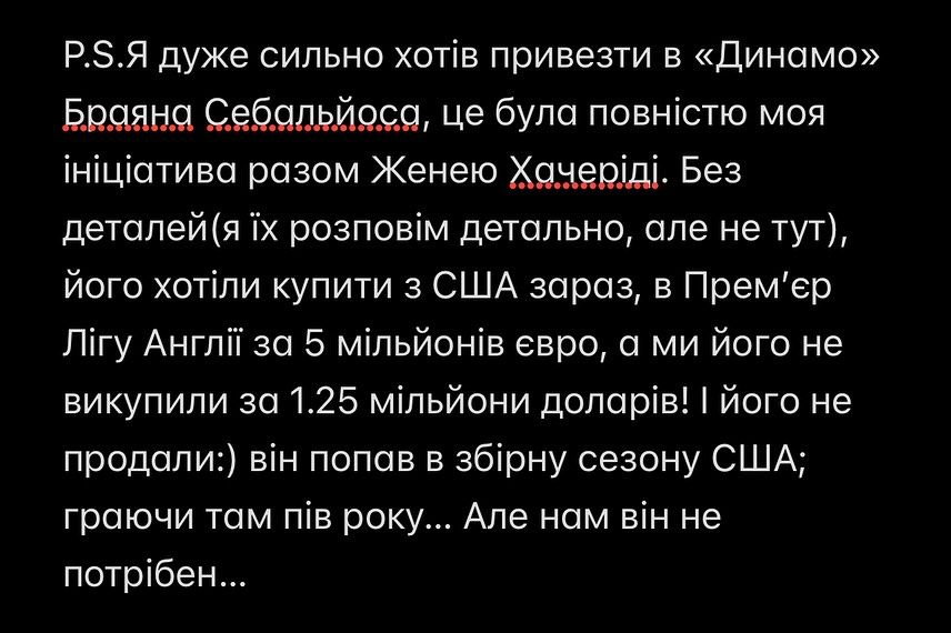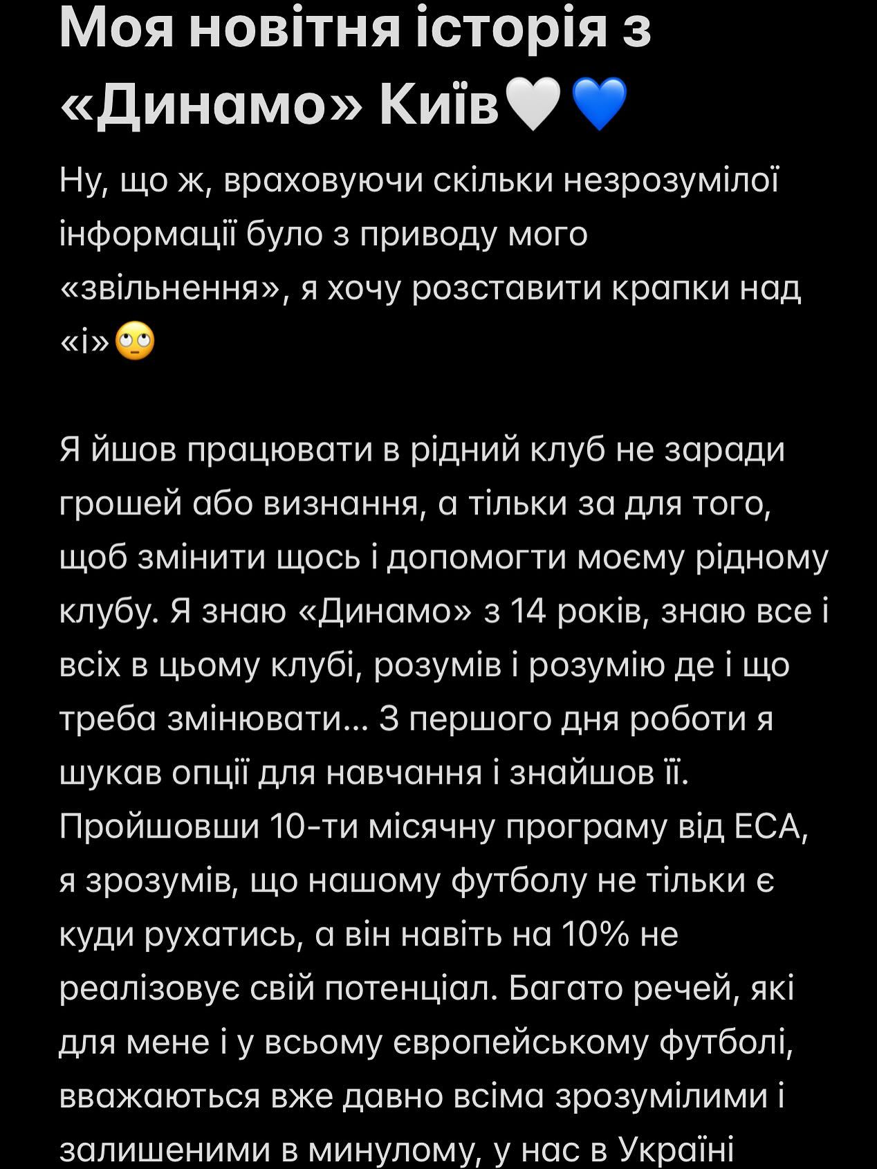"Наведу приклад. Тільки-но я прийшов працювати, один дуже талановитий хлопець хотів поїхати грати в дуже відомий італійський клуб, тому що… З ним і його батьком навіть нормально поговорити не були в змозі. При тому всьому, що вони хотіли бути в Динамо, але хотіли розуміти куди рухається клуб", – зазначив Кравець.