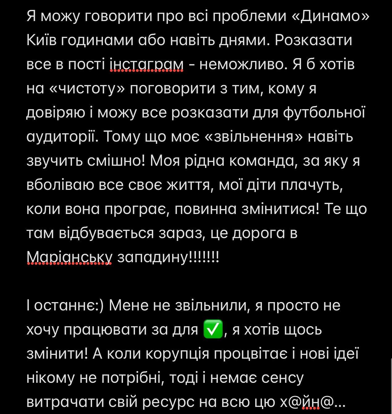 І останнє, мене не звільнили, я просто не хочу працювати задля галочки, я хотів щось змінити! А коли корупція процвітає і нові ідеї нікому не потрібні, тоді і немає сенсу витрачати свій ресурс на всю цю ху***,