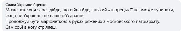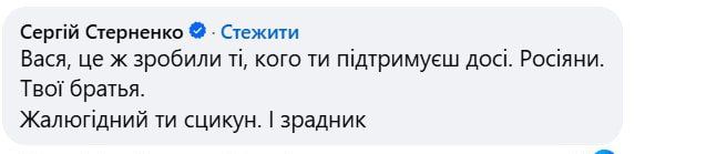 - "Вася, це ж зробили ті, кого ти підтримуєш досі. Росіяни. Твої братья. Жалюгідний ти сцикун і зрадник".