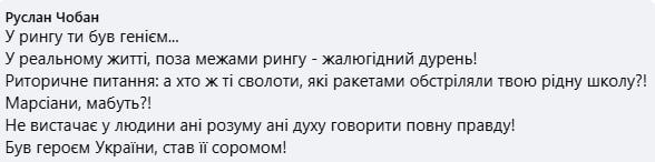 Ексчемпіон світу Василь Ломаченко отримав чимало негативних коментарів під своїм дописом у фейсбуці від українців. Колишньому боксеру нагадали, що це зробили росіяни, яких він вважає братами.