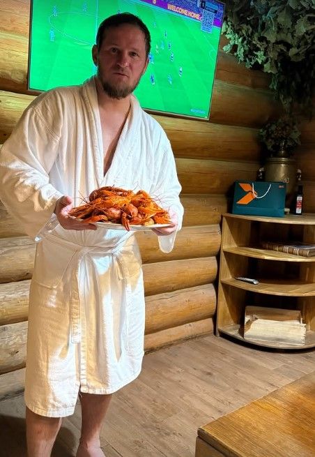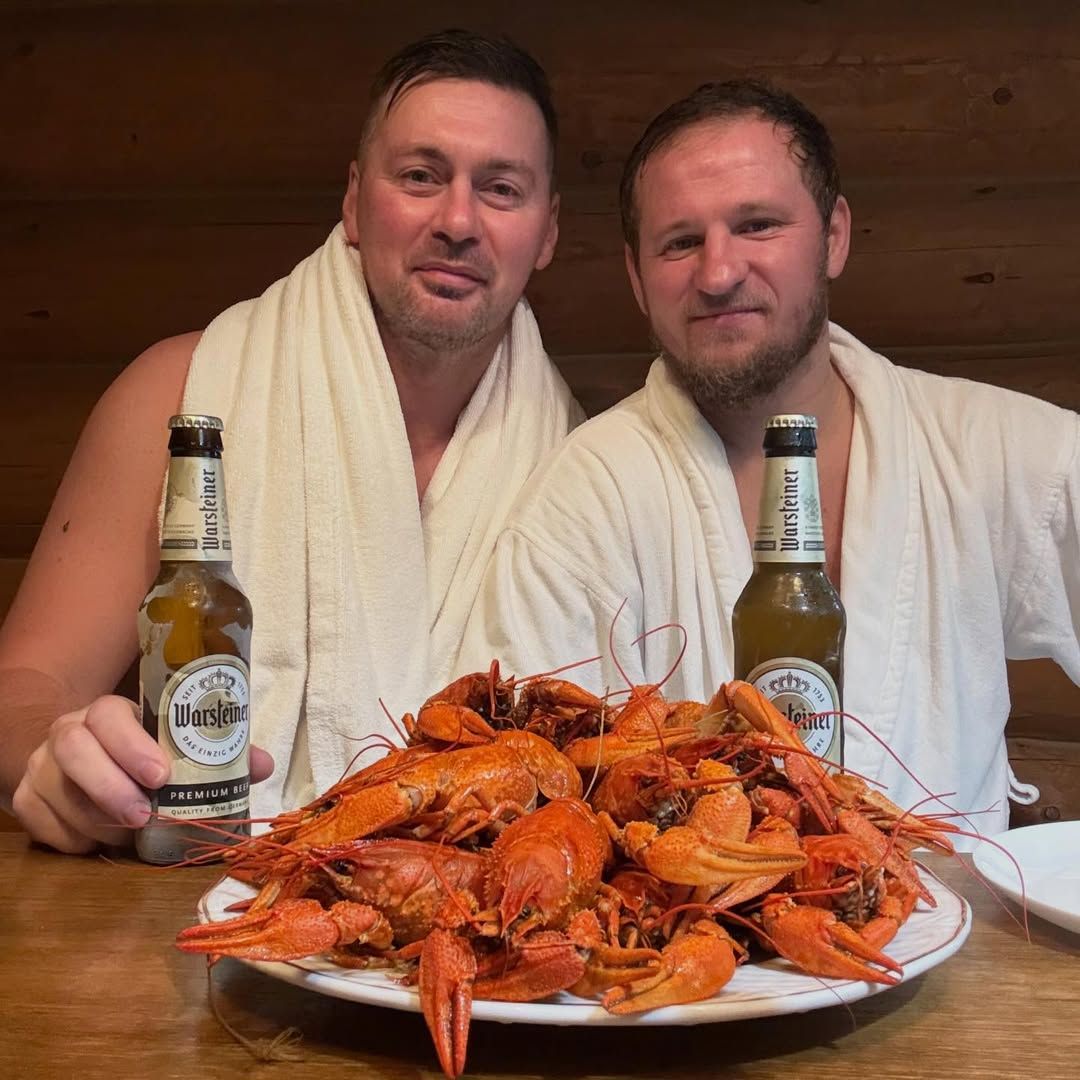 На ній хлопці позують в гарному настрої в одній із бань Київської області. На столі стоїть повна миска раків та дві пляшки пива. "S kentom", – так підписав це фото Артем.