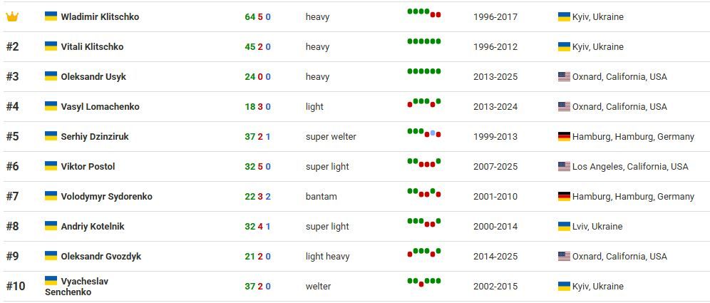 Олександр Усик після перемоги над Даніелем Дюбуа став триразовим абсолютним чемпіоном світу. Однак за версією авторитетного порталу BoxRec рейтинг найкращих боксерів України очолює інша легенда.