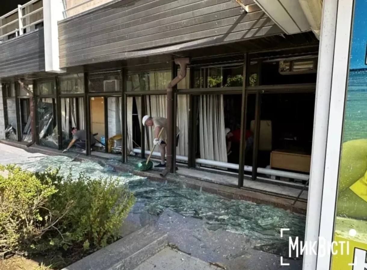 Вибуховою хвилею повибивало вікна у будівлі комплексу. У приміщенні міститься велика кількість уламків.