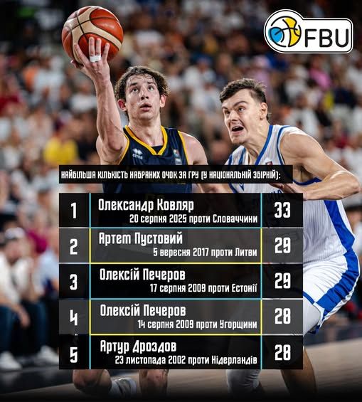 - Олександр Ковляр встановив рекорд результативності в історії збірної України, набравши 33 очка в матчі проти Словаччини.