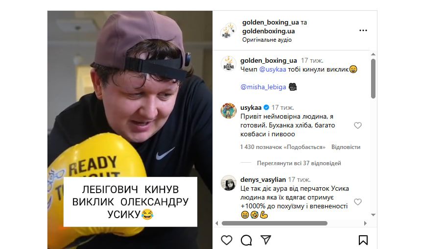 Згодом Олександр Усик написав Михайлу Лебізі в інстграмі. Стрімер показав повідомлення від українського боксера: "Михайло, я йду за тобою".