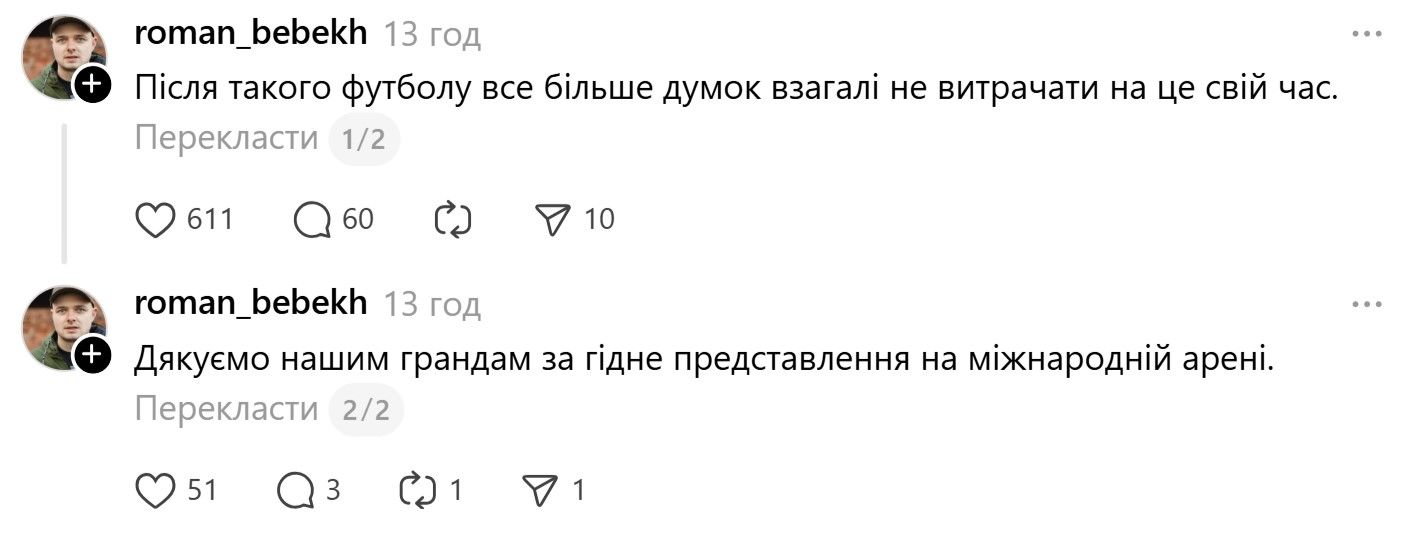 Після такого футболу все більше думок взагалі не витрачати на це свій час. Дякуємо нашим грандам за гідне представлення на міжнародній арені,