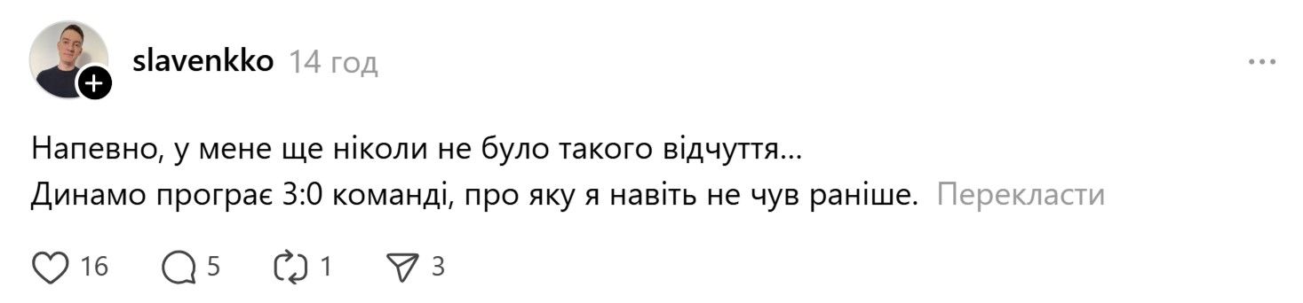 - Напевно, у мене ще ніколи не було такого відчуття. Динамо програє 3:0 команді, про яку я навіть не чув раніше.