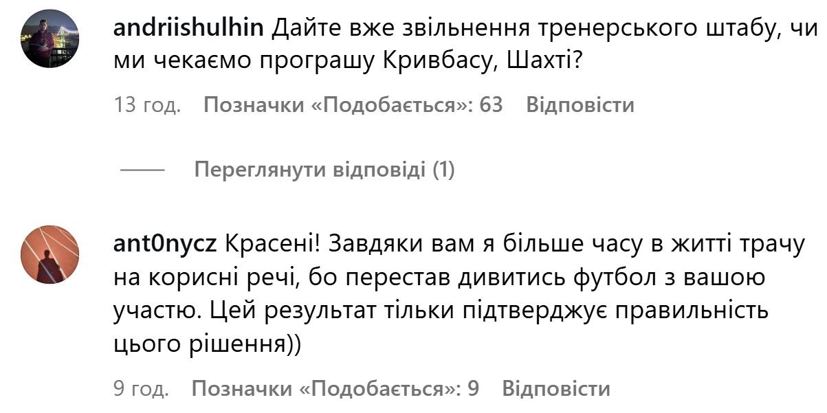 - Дайте вже звільнення тренерського штабу. Чи ми чекаємо програшу Кривбасу та Шахтарю?