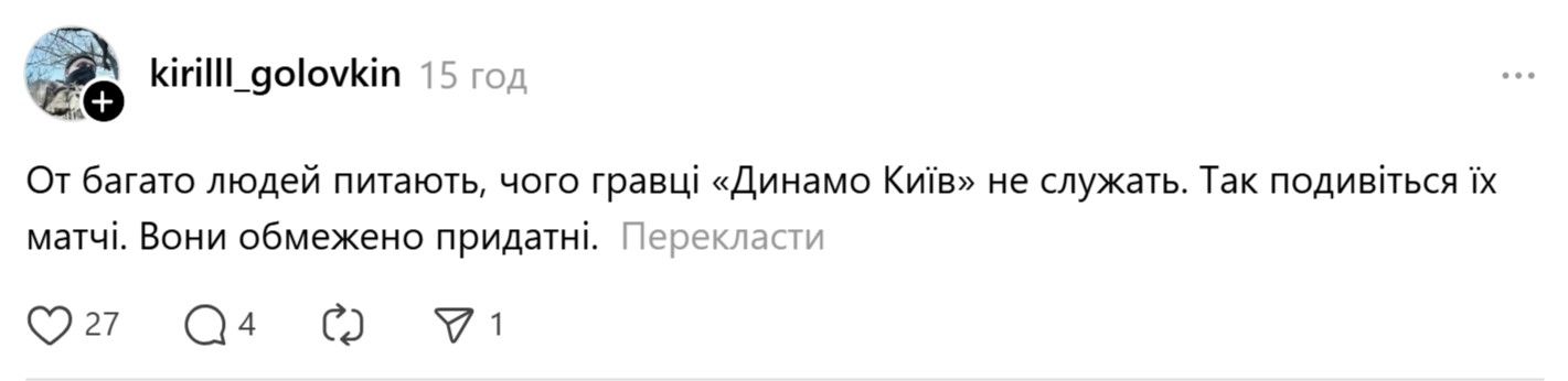- От багато людей питають, чого гравці Динамо не служать. Так подивіться їх матчі. Вони обмежено придатні.