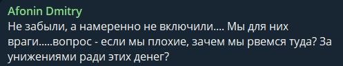- Не забули, а цілеспрямовано не включили. Ми для них вороги. Питання: якщо ми погані, нащо ми рвемось туди? За приниженням заради грошей?