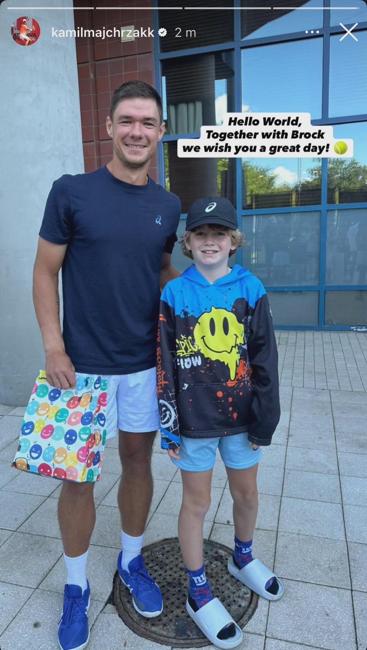 Польський тенісист опублікував відео, де хлопчик отримав кепку від нього та інші подарунки.
