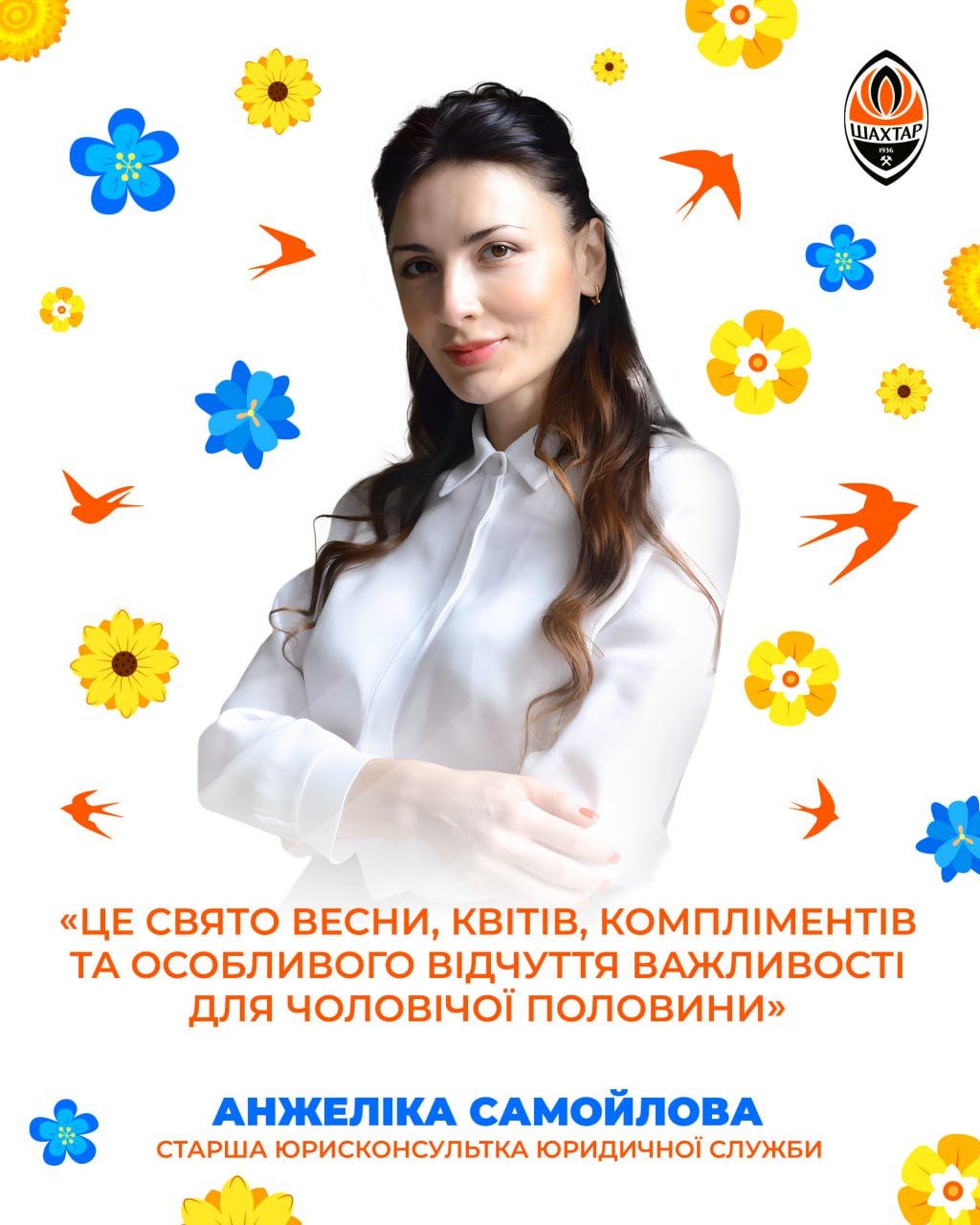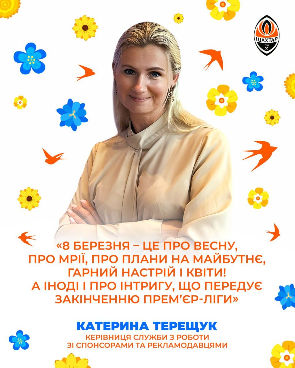Чемпион Украины донецкий Шахтер пожелал всем женщинам "мира и добра, всегда солнечного весеннего настроения, ярких улыбок и любви".