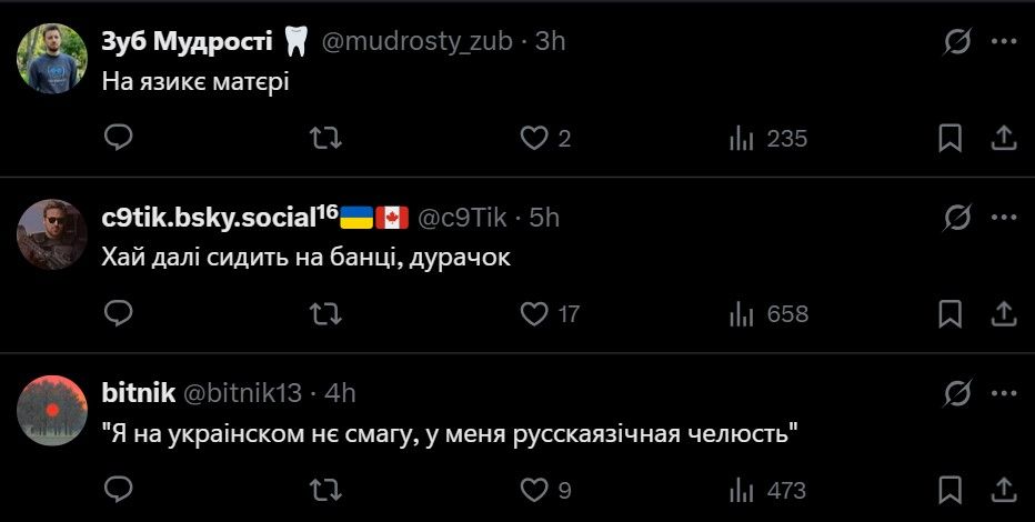 Гневная реакция украинцев в соцсети на русскую речь Лунина: