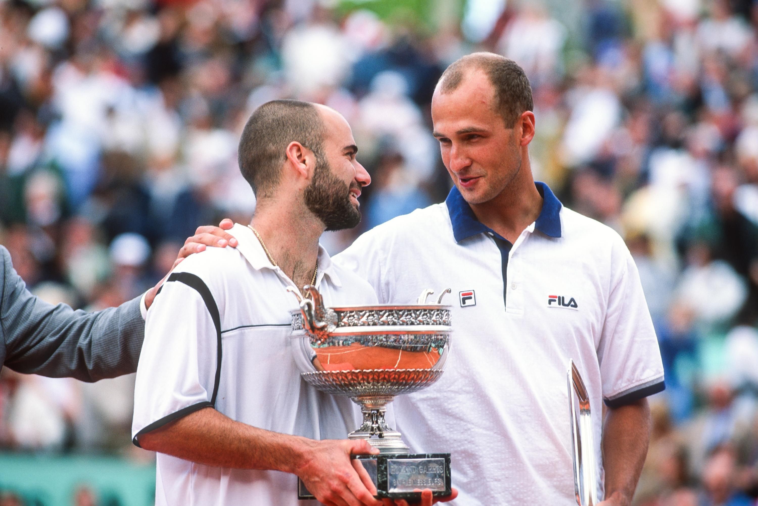 Андрей Медведев и Андре Агасси после финала Ролан Гаррос / фото Getty Images