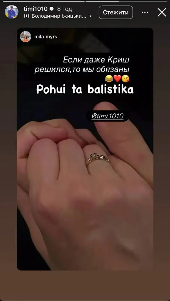 Означает ли это, что Милевский действительно сделал предложение, или это лишь шуточный пост, пока остается загадкой.