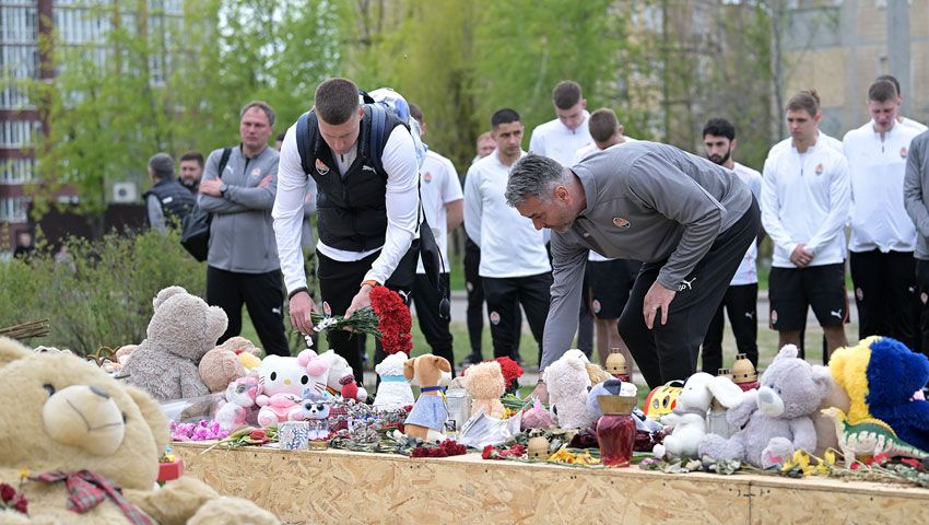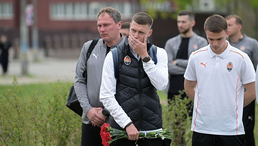 Футболисты, тренерский штаб и менеджмент клуба возложили цветы к мемориалу и устроили минуту молчания в честь погибших. Некоторые из игроков не сдерживали слезы.