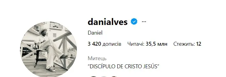 Религиозное био Алвеса / Скриншот из инстаграма Дани