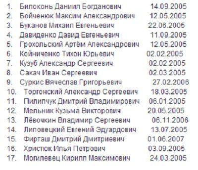 Список игроков детской команды Динамо на 2012/13 / фото ФК Динамо