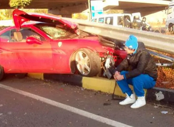 Артем Милевский возле разбитого Феррари / фото турецких СМИ