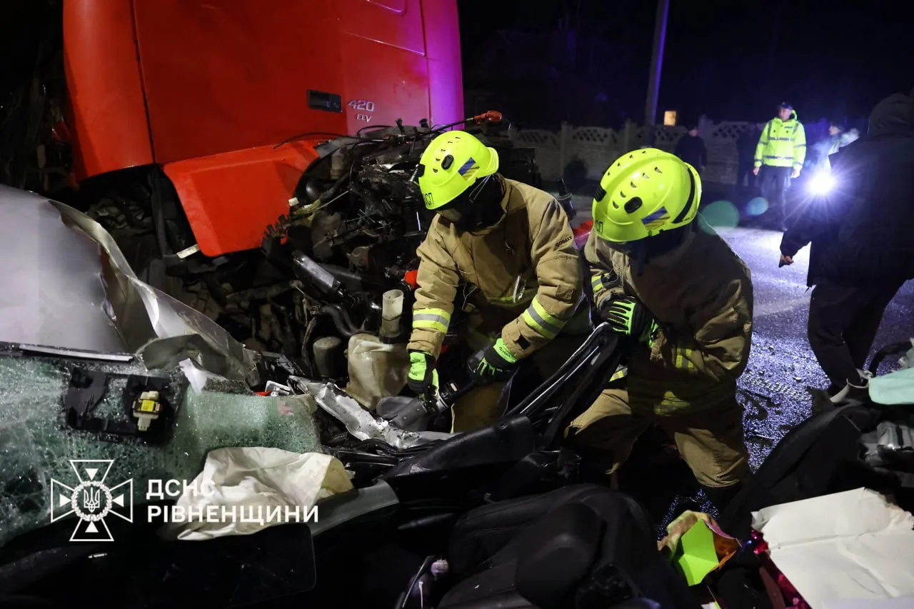 Жену и дочь Василия Кравца достали из авто спасатели / фото ГСЧС Ровенской области