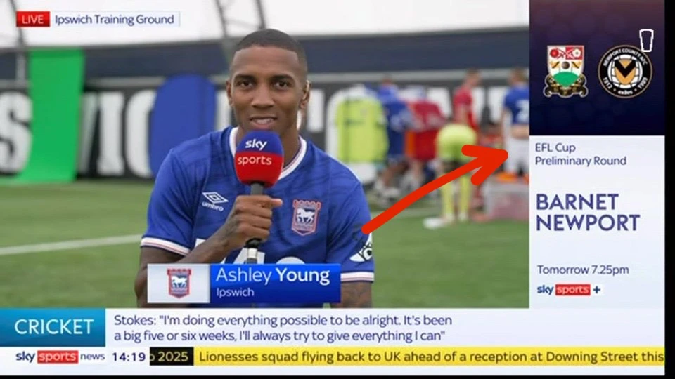 Внимание зрителей привлек не Эшли Янг, а ситуация, которая произошла на заднем фоне во время интервью опытного новичка Ипсвич Таун. Один из футболистов "трактористов" решил пошутить, обнажив ягодицы.