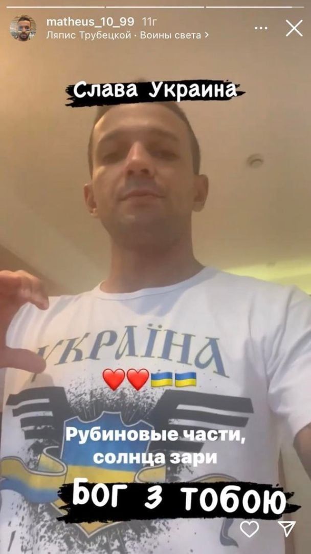 Матеус поддержал Украину / Фото из инстаграма футболиста