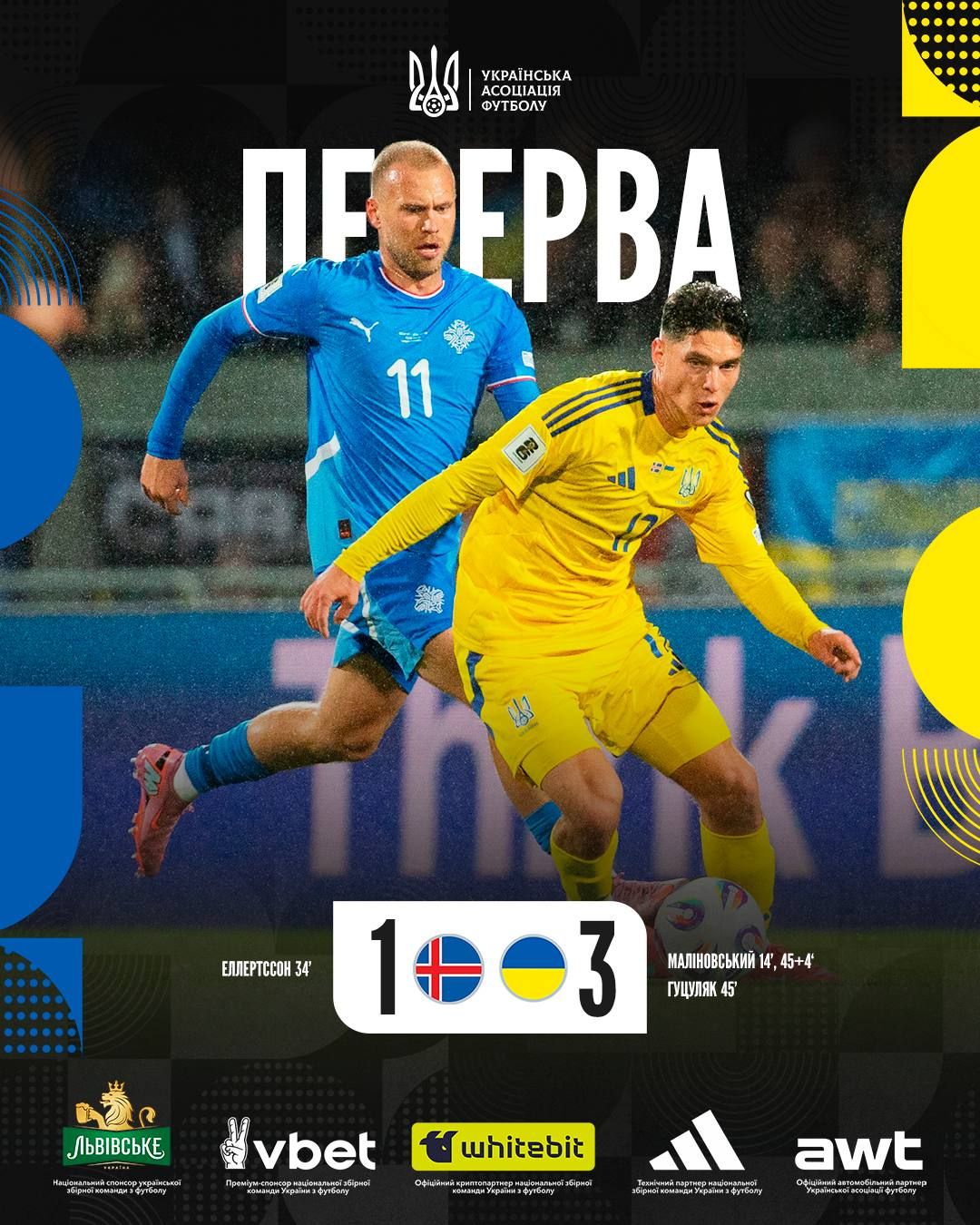 Смотрите лучшие моменты поединка исландия – Украина. ГООООЛ!!! Олег Очеретько увеличивает преимущество Украины. 5:3 – "сине-желтые" впереди. ГООООЛ!!! Украина снова впереди. Иван Калюжный забивает гол за сборную. Исландцы на половине поля сборной Украины. Наша команда отбивается от атак хозяев поля. Камбэк от Исландии. Сборная Украины пропустила третий гол, который забил Гудмундссон. Счет ничейный – 3:3. Исландия отыгрывает один гол. Альберт Гудмундссон ударом головой в падении завершил атаку Исландии. Назар Волошин имел прекрасную возможность вписать свою фамилию в протокол. Вингер выбежал на свидание с голкипером, но не смог его переиграть. После отдыха возобновилась игра в Рейкьявике между Исландией и Украиной. Хозяева поля уступают "сине-желтым" 1:3. ГООООЛ! Руслан Малиновский делает счет 3:1. Полузащитник получил мяч перед линией штрафной площадки и пробил в девятку. ГООООЛ! Алексей Гуцуляк выводит Украину вперед! После прострела Волошина должен был забивать Ванат, но мяч подхватил вингер Полесья, который с нескольких метров пробил под перекладину. Судаков не может продолжать игру. Вместо полузащитника Бенфики на поле вышел Назар Волошин – представитель Динамо. Украина пропускает гол от Исландии. Микаэль Эгилл Эллертссон переиграл Конопля и пробил в ближний угол Трубина. Перекладина спасает украинцев от неизбежного гола. Гудмундссон убежал от защитников сборной Украины и сотряс каркас ворот Трубина. После пропущенного гола Исландия больше владеет мячом. "Сине-желтые" пытаются играть на контратаках. ГООООЛ! Руслан Малиновский открывает счет в матче. Полузащитник Дженоа получил мяч в штрафной площадке и огорчил голкипера Исландии. В этой атаке стоит отметить голевой пас Виталия Миколенко. Игра преимущественно идет в центре поля. Обе команды донимает дождливая погода и мокрое поле. Первый удар в направлении ворот Украины. Полузащитник Исландии Йоханнессон пробил мимо рамки. Прозвучал стартовый свисток арбитра Свена Яблонски из Германии. Игра началась. Команды уже на поле. Прозвучали гимны Украины и Исландии. Через несколько минут начнется игра. Главный тренер сборной Украины Сергей Ребров определился со стартовым составом на матч с Исландией. С первых минут будут играть Руслан Малиновский и Николай Шапаренко. На острие атаки игру начнет форвард Владислав Ванат. Украина: Трубин, Конопля, Забарный, Матвиенко, Миколенко, Калюжный, Малиновский, Гуцуляк, Шапаренко, Судаков, ВанатВидеообзор матча Исландия – Украина
