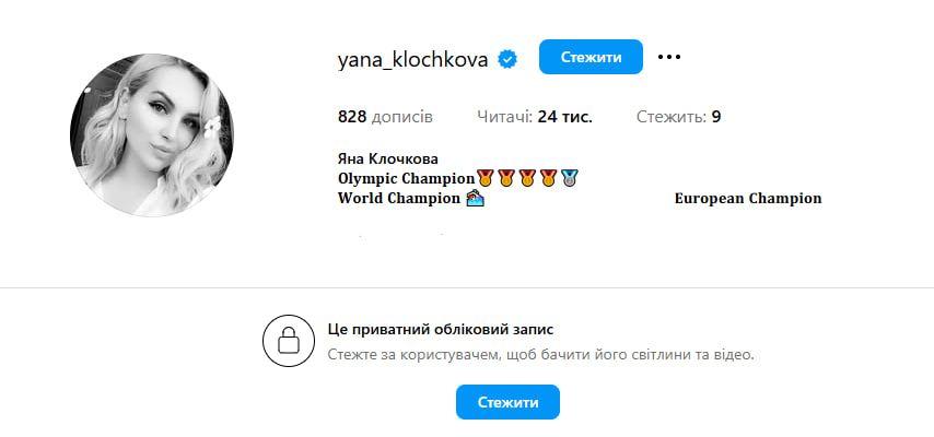 Клочкова закрыла профиль в инстаграме / Скриншот из инстаграма пловчихи